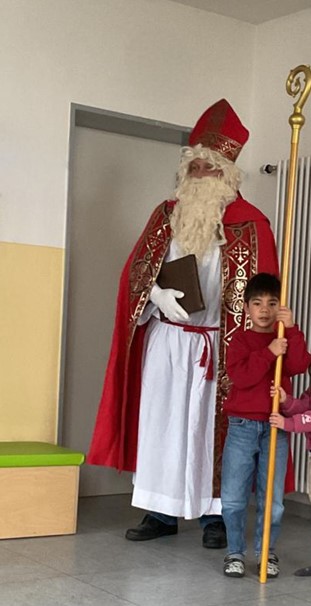 Am 5. Dezember ging es direkt weiter. Nach einem leckeren Buffet hat uns der Nikolaus besucht und hatte für jedes Kind eine Kleinigkeit dabei. Mit unserem Nikolausgedicht haben wir ihn verabschiedet, so dass er zu den anderen Kindern weiterziehen konnte.
